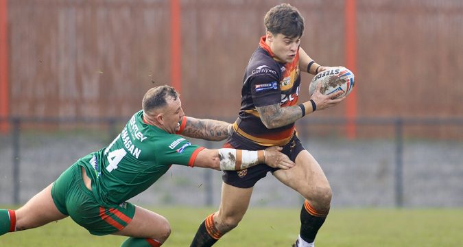 A game that was played in tough conditions saw three tries each in the first half but only four points scored in the second. With time running down, a pe Dewsbury Rams earn last-gasp victory over Keighley Cougars